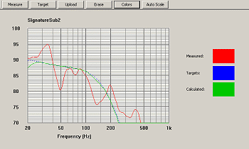 Running the program is very simple. On the rear panel of the subwoofer, set the volume control to the middle position (12 o’clock), the cut-off frequency to Bypass, and the phase dial to 00. Then, put the microphone on its included stand at listening level height, and point it at the ceiling. Boot the Perfect Bass Kit program and click “New Measurement”. This procedure will step you through the measurements, and the minimum number of positions needed to perform the calculations is five, so you have to put the microphone in five different locations as it prompts you to do so. Once the five measurements are completed, the program calculates a room response curve (EQ) that will generally satisfy all five locations. You can save the EQ file, move the sub if you are not quite happy with the results, and do another run. If you like the first one better, move the sub back to its original location, run the software, and upload the first EQ file.