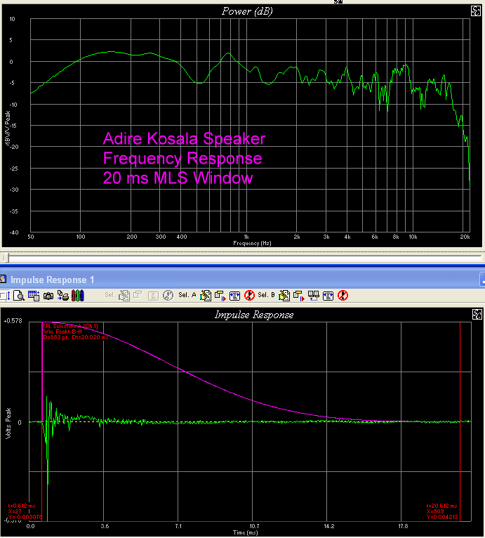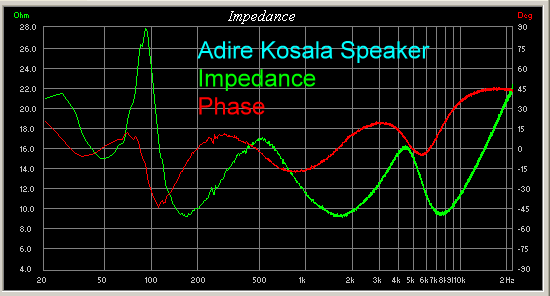 Conclusions The Adire Audio Kosalas are a surprisingly good speaker for less than $700/pair, with real wood veneer. The tweeter centered with the woofer produces an excellent soundstage, and their sensitivity, along with an average impedance of about 12 Ohms, would make them a piece of cake for tube amplifiers (tube amps love high impedance speakers), as well as home theater applications with mass market receivers.