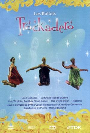 Though the notion of large boned, tutu-clad transvestites en pointe making light of the conventions of classical ballet seems less novel than when the Trocks first debuted in 1974, this video's 100+ minutes of classic and original travesty parody ballets shows a troupe as fresh as when they first began performing over 25 years ago. Certainly the lightness with which they execute their routines remains intact. Exaggerated facial expressions, ridiculous movements, missed cues, occasional upstaging, and hilarious “that can't be in the script” excursions go hand to toe with interesting choreography and surprisingly graceful movement. While the bravura leaps and breathtaking turns that make ballet so engrossing are in short supply --there are no Pavlovas, Tallchiefs, or Makarovas in the troupe, let alone their male Nijinsky, Nureyev, or Baryshnikov counterparts -- there is sufficient balance between skillful dancing and extraneous absurdity to keep us pleasantly entertained and sometimes tickled pink. Since their 1975/1976 season, which saw The Trocks' first extended tours of the United States and Canada, the troupe has been seen internationally on a number of prestigious television shows including a Shirley MacLaine special. The dancers have also performed with such gifted guests as Maya Plissetskaya, Leanne Benjamin, percussionist Evelyn Glennie, and Miss Piggy; and journeyed beyond North America to such countries as Australia, England, Germany, Holland, Italy, Scotland, South Africa, Wales, and Japan. What was once an in-joke has now become an institution. While the DVD experience can never provide the collective electricity and excitement generated by live performance, it does afford us a premium seat, rendering into sharp focus the contorted facial expressions, raised eyebrows, and lowered pinkies upon which much of the Trock joyrelies. (It's most amusing to discover that some of the men playing men look more like women than the men dressed as women). DVD-Video also gives us the option to enjoy the program in either stereo or 5.0 surround sound. The short closing “documentary” offers little more than a collection of backstage shots, but it does show a side of the Trocks not available to the audience. The Czech Philharmonic Chamber Orchestra comes across quite well, its instruments well captured in an air-filled soundstage. Frankly, even if the musicians sawed away, it wouldn't matter. The dancing is what it's all about. This is a program in which art springs from artifice, and delight from the ludicrous. Highly recommended
