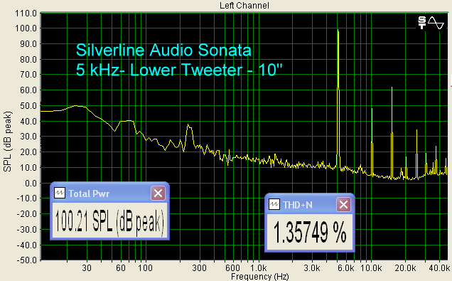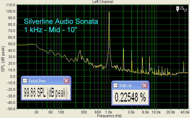 At 100 dB, 10" from the driver, and at 1 kHz, distortion was less than 1/4 of 1%. Excellent.