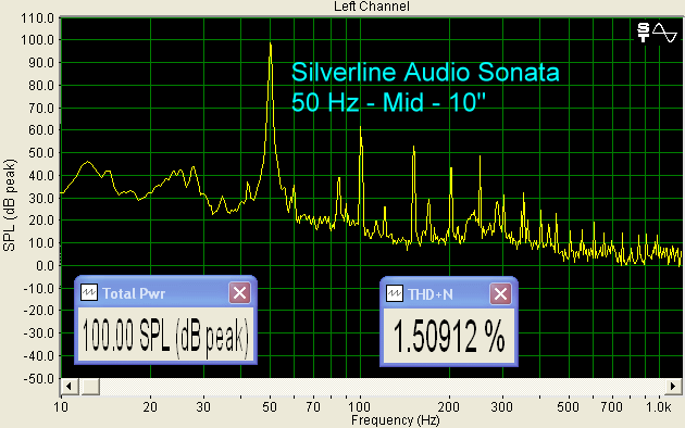 At 50 Hz, the distortion was a much more acceptable 1.5%. As I mentioned, the specified crossover would have indicated that one of the woofers should be producing it primarily, but there was a higher SPL reading (by about 2 dB) at the mid-range driver, so that is where I pointed the microphone.