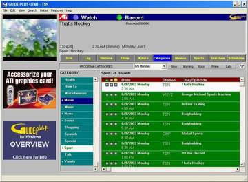 Guide Plus+ Guide Plus+ is a TV listings application similar to the guide on a satellite receiver or digital cable box and even includes picture in guide (watch the current channel while you browse the listings). It was easier to set up than I expected. As I live in a small urban center of Canada, most internet TV listings are inaccurate, or the channels are mixed up. In this case I entered my postal code (zip code in the US), chose one of the three options presented, and I was up and running with accurate TV listings for my area. The Guide Plus+ application is very easy to use and allows you to scroll days ahead. The search functionality includes fields for interest, titles, actors, and more, making it a fairly comprehensive and easy to navigate view of what's coming on. The Guide is linked to the PVR functionality so you can have any program in the future automatically recorded. To be truthful, the ease of navigation and functionality of the Guide Plus+ application exceed that of my PVR satellite service. DVD Version 8.5 of the ATI DVD player has the same look and feel as the other Multimedia center software components. From an MPEG decoding and deinterlacing perspective, this is another flag reading player that tests very similar to the players in our software DVD Benchmark. It has all the expected features you would find in any software DVD player, such as video overlay adjustments and aspect ratio control. The only truly unique feature of this DVD player is that it leverages the same video overlay options as the TV application, enabling all the same THRUVIEW options. The ATI DVD player lacks the ability to turn off hardware acceleration. However, in most cases, software DVD players test very similar in hardware and software mode, so this should not cause an issue. It is important to remember that the S/PDIF digital output on the AIW series of cards will not work as a sound card replacement. It was designed to pass digital audio streams from DVDs to an external processor. There are a few other applications that take advantage of it, including TheaterTek, but they are far and few between. I was also happy to see that the ATI DVD player now passes DTS digital signals, a feature lacking from some earlier versions.