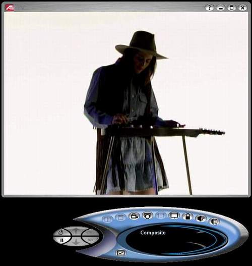 Displaying higher resolutions via the component output looks good. There is noticeable flicker using interlaced resolution like 1080i, but it seems less distracting while watching video material. One annoying issue that shows up when using the component output is that you cannot output MacroVision encoded DVDs at resolutions higher than 480p due to licensing issues. There are ways around this, but due to legal issues I cannot discuss them. The other issue with 1080i is that on a 36” TV, the fonts are really, really small. At the opposite end of the scale from 1080i, the 480p output was flicker free with very large fonts, but lacked overall resolution. It is worth mentioning that a couple of resolutions I tried using the 1080i output, but it had substantial overscan. Since my TV passes the 1080i output directly (unlike 720p which it resamples), this appears to be an issue with the ATI driver and not with the TV. The RGB output to the monitor or the projector looked great. It is worth noting I did not perceive a noticeable increase in video quality over the ATI AIW 7500 I was using prior to the 9700. I might be able to convince myself the image was a little sharper, but the difference is negligible. Software The main component of the ATI software is the Multimedia Center, which is a collection of applications accessible on their own or via a floating tool bar. The group of applications address playing media like CDs, VCDs, DVDs, and MPEGs, watching TV or other video sources, a library for managing multimedia files, and an interactive TV listings guide. ATI TV