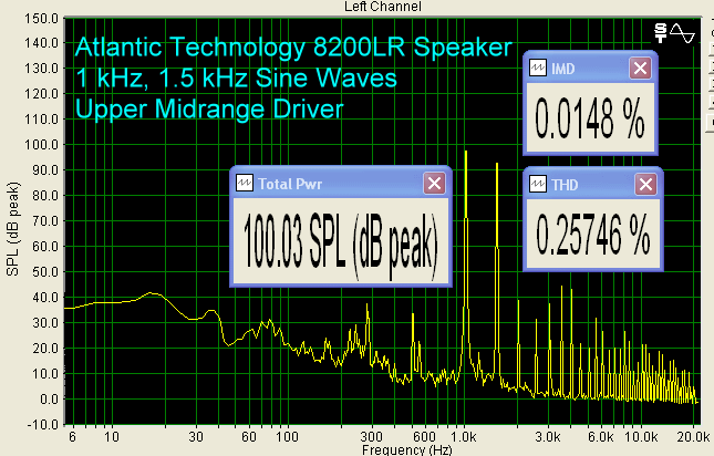 At 1 kHz, using the upper midrange driver, there was less than 0.25% THD, which is very good.