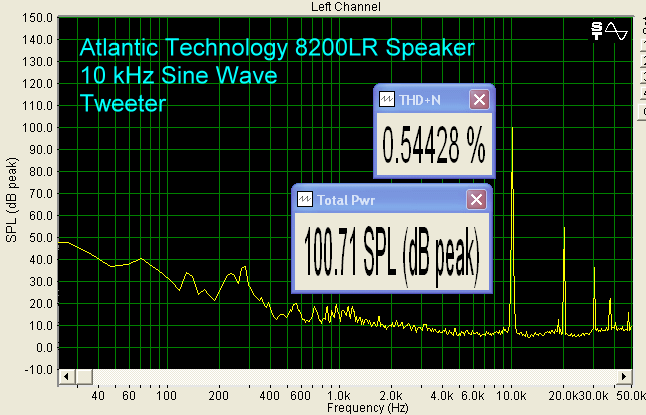 At 10 kHz, measured from the tweeter, THD was less than 1%.