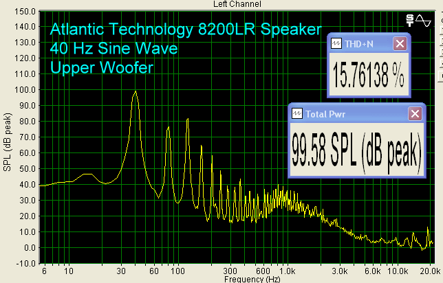 engineer, and kudos to the 8200 system for the faithful reproduction. On the Bench (JEJ) We tested the 8200 LR as representative of the system. At 40 Hz, which is below what the 8200 LRs are rated for, THD was high. They are meant to be crossed over at about 70 Hz.