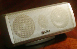 at 3.5 kHz. Both the satellites and the center speaker are housed in a