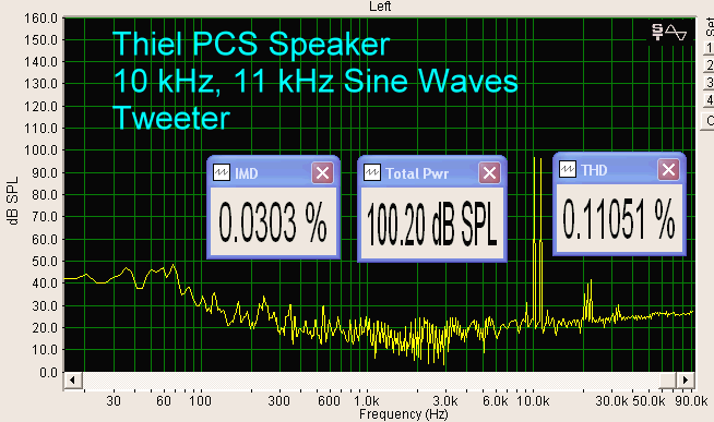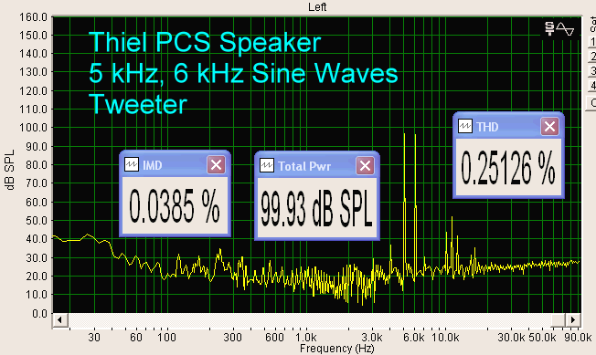 IMD from the tweeter, using 5 kHz and 6 kHz sine waves, was only 0.04%.