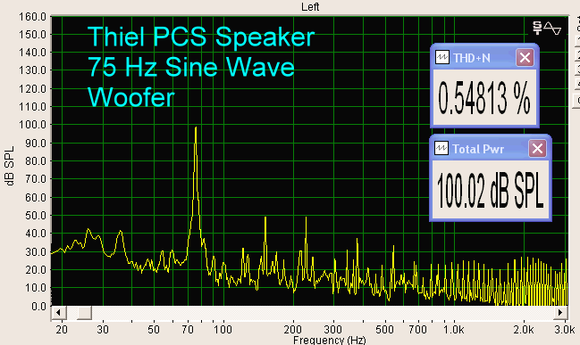 At 75 Hz, the story was much different. Well within the PCS' range, there was a remarkably low 0.5% THD+N at 100 dB.