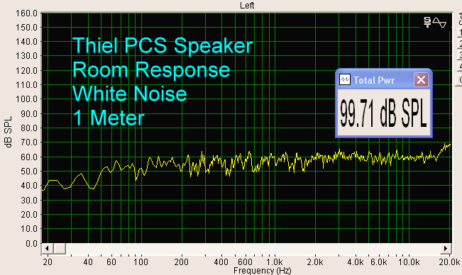 Using white noise to test the room response, you can see that the PCS had a very flat response, with a bit of an upswing above 18 kHz.