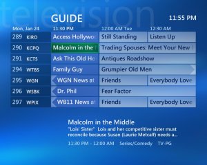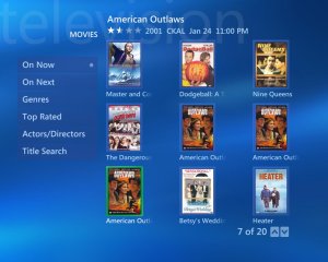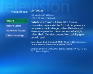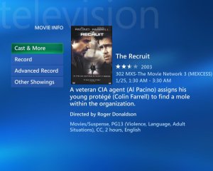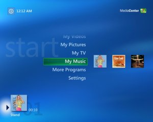 Introduction In the world of Home Theater PCs and Media Servers, Microsoft's Media Center 2005 (MCE 2005) is Microsoft's third revision to the Media Center platform and a noticeable improvement over the first two versions. Media Center is designed to be used as a standard component in your home entertainment system and not as a computer. While there is a computer running Windows XP underneath the Media Center interface, let's forget about that for now. MCE serves as a CD archiving and playback solution, DVD Player, Personal Video Recorder (PVR), Digital Photo Viewer, and other media playback solution. Basically if you can hear it or see it and it is stored in a digital format this unit should play it (your mileage may vary). Assuming your cable service is old fashioned and doesn't have an STB (Set Top Box), you could run your entire home entertainment system off this one device connected to a TV. I somehow doubt anyone using Media Center is using it exactly that way, but the capability exists. Most people probably run a combination of a classical entertainment system with media center running as an additional component. Click on any of the screen shot photos below to see a larger version. Media Center is an OEM operating system which means you cannot purchase the software from Fry's or CompUSA. You will need to buy a PC that is configured with MCE 2005, and those you can get at Fry's, CompUSA, Best Buy, Circuit City, Dell, and many other stores. They cost about $1,000 and up. In reality, there are several on-line retailers that sell OEM software copies of MCE if you purchase a motherboard or some other piece of hardware that will satisfy the Microsoft OEM agreement. Assuming that you purchased a pre-configured Media Center PC, it will, at minimum, have a video card capable of connecting to a standard TV and a tuner/capture card used for PVR functionality. It will also have a remote control for easy navigation and most likely an IR output device of some sort to control STBs. MCE 2005 has lots of competition out there, in part because you have to buy a computer or motherboard to get it. Such programs as Freevo (http://freevo.sourceforge.net/about.html), which is Linux-based and open source, so it is free, and SageTV (http://store.freytechnologies.com/Merchant2/merchant.mv), which you have to pay for (less than $200), but is cheap compared to buying an entire computer, give us more choices for less money, and will let you use your existing computer. Set-up MCE 2005 set-up is straightforward. Connect the standard computer and AV devices (keyboard, mouse, power, Ethernet, remote receiver, cable TV feed or video output from your set top box) to the computer, and connect one of the computers display outputs (composite/S-Video/DVI/RGB/etc.) to your display device. Hopefully, you have a high definition display with a DVI-D input, but even if you don't, a standard old composite video input will get you up and running. A network connection is not required to run media center, but it is highly recommended and needed if you plan on using the PVR functionality or having the music you archive have properly named titles. The first quirk when using a PC-based solution in your entertainment system is startup time which is typically greater than a dedicated device. Once the computer has booted and entered the media center interface, everything can be controlled from the remote. With MCE, you will probably never use the keyboard and mouse, but at some point in time you will need to do some standard computer related tasks like apply patches and turn on auto-update. A wireless keyboard and mouse will come in handy for this. The main interface has options to view Music, Video, TV, Pictures, and a few other programs. MCE monitors new local devices for new media, for instance if you were to insert a DVD, it would ask if you wanted to play it, of if you were to insert a CF card (digital camera memory card) full of pictures, it would allow you to transfer them to the Media Center and display them. In entering any of the menu items for the first time, it will ask the user if they wish to search media files of the type on the local drives and/or from the network. On one occasion I inserted a USB memory key that contained AVI files and folders containing a number of photos. Media Center recognized the new device and asked if I wanted to view the photos or play videos. MCE also supports integration with external devices and programs. For instance, you can use MCE to sync music to a portable audio player or burn music to a CD. On the program integration side, MSN Messenger can be configured to work within the MCE interface. My Music For indexing music, Media Center leverages the standard Windows Media Player Library. This has pros and cons, and if you are downloading a lot of your music off the Internet from sources of questionable legality, you are probably not going to be impressed. While the Media Player library works well at building indexes of ripped CDs encoded with it (typically to MWA format), it can have less than desirable results when indexing audio files encoded using other methods. With MP3s it seemed to do ok, but often put 90% of the songs from an album in the correct spot and left one or two songs in some rogue category or album title. With formats like AAC, FLAC or other open source standards, the results went down hill fast and I basically gave up trying to get any other media files beside MWA and MP3s to work properly. To give Microsoft credit, all the standard searching and sorting capabilities are present (artist, genre, title, song, etc.) During playback, you can browse other titles and add them to the queue to be played after. The queues you build can be saved as play lists and even burned to CDRs directly from within the MCE interface. Inserting a CD will start the playing of that CD, and MCE asks the user if they want to save the CD to the Media Center. When using this method of getting music i
