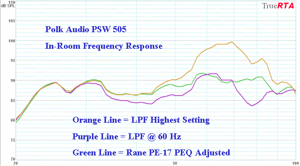 of the subwoofer. The PSW505 frequency response measured 35 Hz -142