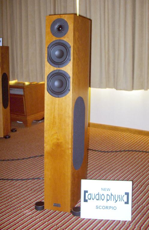 Page 7 Audio Physic speakers are from Germany. This model, called the Scorpio, is about 40" high, has one 1" softdome tweeter, one 5.9" midrange, one 5.9" mid-woofer, and four 7" woofers (on the side). Price is $6,500/pair.