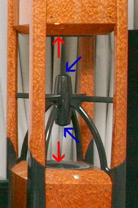A close-up photo shows the position of the woofers (red arrows) and tweeters (blue arrows). This particular pair of speakers is $12,000. Go Back to HE 2006 Index Page.