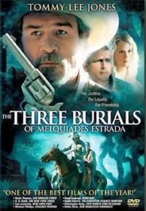 "The Three Burials of Melquiades Estrada" Synopsis Peter Perkins (Tommy Lee Jones), a Texas cowboy, has a friend named Melquiades Estrada (Cedillo), who works with him on the ranch. Melquiades tells Pete one day that if he dies, please take him back to Mexico to be buried. Pete brushes off the conversation, saying he isn't going to die. Well, of course, we all have to die someday, and Melquiades' day comes when a new USA/Mexico Border Patrol officer named Mike Norton (Pepper) accidentally shoots him while searching for illegal immigrants crossing the border. Mike buries Melquiades (the first burial). Pete finds out that Mike did the deed and makes him dig up the body, only to rebury him on the ranch (the second burial). Then, Pete decides to honor Melquiades' request, and has Mike dig the body up again so they can take it back to his home town in Mexico for final burial (the third burial). Along the way, of course, Mike continually tries to get away, but in the extreme heat and dryness, he finally resigns himself to his fate. You can imagine the state of deterioration of the body as they march the horses through Mexico. Commentary This was Tommy Lee Jones' theatrical film direction debut (he directed a made-for-TV movie back in the 1990s), and it is quite entertaining. For those of you who have never been to Texas, it is just like it's portrayed in the movie. Whether or not you like that sort of scenery and climate is another matter. And, oh . . . the Mexican food is something else. Lots of red gravy and not too much cheese. Extras These include a Director's Commentary and other things. - John E. Johnson, Jr. -