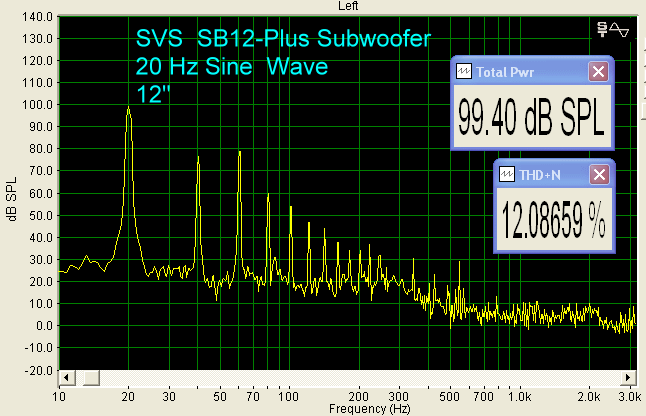 On the Bench I was able to get a maximum of 116 dB at 1 meter, using our standard combination frequency test tone of 20 Hz, 31.5 Hz, and 50 Hz. That is a lot of power! For such a reasonably small subwoofer, there is plenty of output at 20 Hz. THD+N is 12%, which is lower than I thought it would be. I really could not hear any harmonics at less volume, which is where consumers are more likely to have it set.