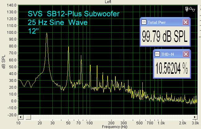 By 31.5 Hz, THD+N was less than 10%. It is suggested by many engineers that 10% THD+N is the audible threshold for deep bass.