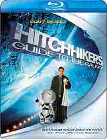 "The Hitchhiker's Guide to the Galaxy" (Blu-ray) Synopsis Everyone has bad mornings. You wake up late, you stub your toe, you burn the toast. But for a man named Arthur Dent, this goes far beyond a bad day. When he learns that a friend of his is actually an alien with advanced knowledge of Earth's impending destruction, he is transported off the Earth seconds before it explodes to make way for a new hyperspace motorway. And as if that's not enough, throw in being wanted by the police, Earth II, an insane electronic encyclopedia, no tea whatsoever, a chronically depressed robot, and the search for the meaning of life, and you've got the greatest adventure off Earth. Commentary The first time I ever tried to watch this film I ended up stopping it about a third of the way through because I was just not enjoying it. A bit too silly for me I guess, and I didn't know what to expect from it in the first place. Watching it this time was a lot better because I knew what I was in for. While I still don't think this is a great movie by any means, it does have its fun and humor at times. I am actually surprised that this has a legion of fans behind it though. Technical I must say that I was EXTREMELY impressed with this transfer for quite awhile into the movie. Then I started noticing a lot of inconsistency in overall detail. It reminded me a lot of when a de-interlacer drops into video mode and the image gets soft, only to get sharp again when film mode is restored. Most of the time this is a really detailed and dimensional transfer that would make for some great show-off material. But the occasional softness was really distracting for me and far more occasional than I would have liked it to be. Colors are excellent, and the sense of depth in the image is fantastic at times. I was also pleased to see an almost complete lack of banding, especially since there are a lot of parts in this film that would normally be rampant with it. The uncompressed PCM soundtrack is far more dynamic than I was expecting. The low-end presence at times can be downright startling and system threatening if turned up too high. Surrounds are very engaging, and the overall sense of space is quite nice. I did notice a few times when the dialogue sounded a bit inconsistent and even had some static in it, but it was only on a few occasions. Extras Extras include a pair of commentaries, deleted scenes, and an additional guide entry. - Kris Deering -