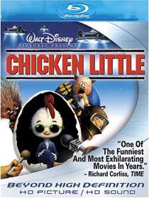 "Chicken Little" (Blu-ray) Synopsis After Chicken Little causes widespread panic - when he mistakes a falling acorn for a piece of the sky - the young chicken is determined to restore his reputation. But just as things are starting to go his way, a real piece of the sky lands on his head. Chicken Little and his band of misfit friends, Abby Mallard (a.k.a. Ugly Duckling), Runt of the Litter, and Fish Out of Water, attempt to save the world without sending the town into a whole new panic. Commentary It is sad to say, it but Disney has been on a pitiful downward spiral for quite sometime now. The Mouse House used to be the bar when it came to animated features, but as of late, their feature films haven't been much better than their dismal direct-to-video fare. Chicken Little continues that trend unfortunately. While Disney does a superb job with the 3-D animation, it doesn't come close to saving this sad and shallow story that is so full of pop culture cliques. When are studios going to realize that style does not in any way make up for substance. You would think they could look at what their cohorts Pixar have been doing and realize that it isn't about just the animation, it is the whole package. Technical While the movie wasn't much to brag about, the transfer sure is. Disney has delivered a breathtaking AVC encode here that is just about as flawless as it can get. I was waiting for the banding to creep in with all of the expansive backdrops, but it never did, a feat only this animated feature has managed to pull off so far. Detail is breathtaking, especially fine object detail. Dimensionality is superb, but like the recently reviewed Open Season, backgrounds tend to be on the flat side. The visual style of this feature tends to overuse a rather awkward haze at times, and I'm not sure why. It detracts from the backgrounds, and at times, washes out the color palette. Outside of that though, this is pure eye candy. I was a bit worried about this soundtrack in the very beginning of the film. The opening sequence has a bit upheaval that has a ball rolling around town square. For some reason, that bass response in this scene seems dramatically turned down compared to the rest of the action. I was worried that Disney did something wrong and dynamic range was compromised. But after this scene, those doubts went away. The uncompressed PCM 5.1 soundtrack is VERY dynamic and continues Disney's trend of outstanding sound design. Bass response is excellent throughout the rest of the film and lends a hand to the musical selections and the action. Surrounds are used extensively, with very cool discrete effects from all channels. The soundtrack is definitely geared toward the younger audience, with lots of pop music references and even classic rock references too. The soundstage is very immersive toward the end, with plenty going on from all sides yet I never felt like anything was being compromised. Extras Lots of extras here, and Disney has taken advantage of some of the Java features of Blu-ray. You get a production feature and a full length commentary, TONS of deleted scenes, some music videos and singalongs, and a collection of pre-bookmarked demo scenes. - Kris Deering -