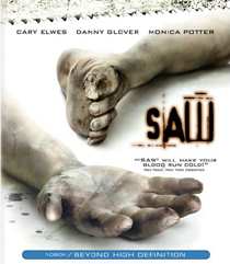 "Saw" (Blu-ray) Synopsis Two men wake up at opposite sides of a dirty, disused bathroom, chained by their ankles to pipes. Between them lies a dead man loosely clutching a hand-held tape player and a handgun. Each finds a tape in his back pocket, and they play the tapes. One is threatened, the other isn't. But they have a task: One must kill the other by 6:00, or his wife and daughter will die. They find hacksaws in a toilet, and try to cut the chains, but it doesn't work. They are the two newest victims of the Jigsaw Killer. Commentary I was really let down when Saw first came to the theaters. The trailers really made this one look like it could be a terrifying serial killer movie in line with something like Se7en. Unfortunately, it only teeters on what I think it could have been and backs off from the level I think it advertises at. The formula is quite good though, and I understand why it was followed up with two sequels already. I just wish it would have had the gumption to deliver terror all the way. Technical The HD presentation is a nice step up from what I saw on standard DVD, but not quite up there with the better HD presentations on the market. Detail is probably the highlight of the transfer, but contrast and depth are a bit lacking. Darker scenes tend to be on the softer side and can get a bit noisy. This isn't a very old film so I was expecting a bit more. Since this was shot on a rather meager budget, production limitations may be more of the issue when it comes to the visual style. The audio side fares far better than the video. Lionsgate has included a full bitrate DTS-ES discrete soundtrack, and it is very aggressive. Like most horror films, there is a lot of dynamic effects that go from quiet to super loud to shock you, and the low end of the soundtrack is very ominous. The film's music is on the harder side and blends in well with the ambience of the film. Extras No real extras on this one. - Kris Deering -