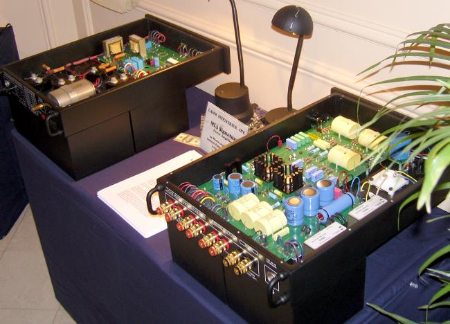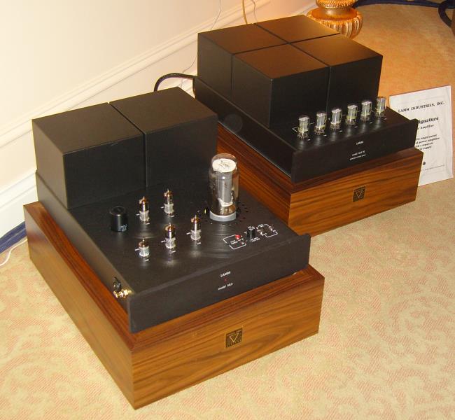 Page 58 - Lamm Lamm Industries introduced the ML3 Signature Power Amplifier, which are tubed monoblocks that produce 32 watts of Class A sound. A photo of one is shown below. Notice that it is in two pieces, the power supply on the right, and the output stage chassis on the left. Perhaps Duobloc is the right word for this product. Priced at $126,290 for a pair of them.