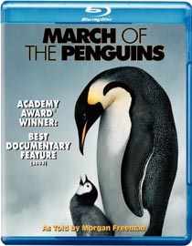 "March of the Penguins" (Blu-ray/HD DVD) Synopsis This is a look at the annual journey of Emperor penguins as they march, single file, to their traditional breeding ground. Commentary It's hard not to love this Academy Award winning documentary that paints a completely new picture of the incredible lives of Emperor Penguins. Narrated brilliantly by Morgan Freeman, the film covers the cycle of life in Antarctica from the march to the mating grounds, to the long wait with egg in tow that the males endure. This is by far one of the most amazing stories of survival I've ever seen. Anyone who ever thinks they have it rough in this world could learn a lesson or two from our fine friends down south. Technical I wasn't that impressed with the visual style of this release. The imagery has a softer feel to it, unless you're dealing with extreme close-ups. Some of the film looks like it was shot using digital hand cameras that don't match up with the resolution of the main photography. Underwater sequences display obvious banding, but most of the feature is devoid of compression artifacts. It is hard to tell how much of the issues you see with this film are inherent in the photography style. What looks almost like ringing is apparent quite a bit, especially in longer shots, around the penguins as they march along. Contrast is decent, but the harsh lighting takes its toll on occasion and hurts depth and dimension. Don't expect the visual splendor that most Discovery HD or IMAX presentations give. Didn't really expect much on the audio side. This film has a wonderful narration by Morgan Freeman, and the tonal balance of his voice sounds perfect. The film's subtle score is also a welcome addition to the mood of the story. I imagine this is a harsh environment for setting up microphones, but the production team did an outstanding job, even at the worst of times. All of the moans, calls, and chirps of the penguins are captured wonderfully, and the editing does a good job of making the most of them. Extras Extras include some production features, a National Geographic special, a Looney Tunes cartoon, and the trailer. - Kris Deering -