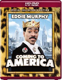 "Coming To America" (HD DVD/Blu-ray) Synopsis Eddie Murphy plays an African prince on a mission to find a bride. On a whim he decides he should take his friend and loyal subject to Queens, NY. In disguise the pampered prince relishes the chance to test his mettle in the urban wilderness. Commentary I guess it is Eddie Murphy month for HD! Lots of films featuring the famed comedian hitting shelves recently. This one is one of his classics, but honestly it is one of my least favorites. It has some great moments in it, but I would be content to just see it on occasion on a local cable station. With so many great Murphy titles out there to choose from, this one would be low on the list. Technical This ended up looking far better than I expected, given its age and budget. The image is remarkably clean on both formats, with only some of the darker sequences revealing natural film grain. Colors are a bit subdued but present the typical look of films this age. Fine detail is quite good and at times rivals a lot of the newer movies I've been seeing in HD lately. The soundtrack isn't quite as impressive as the visual display, but this has more to do with the sound design and recording limitations of the time. Like most films this age, the fidelity overall seems a bit limited, and the dialogue sounds edgier than I prefer. Imaging overall is very front heavy, but the music in the film livens things up a bit. I didn't detect much difference between the HD DVD and Blu-ray versions despite the higher bitrate used for the HD DVD release. Extras Extras include some production featurettes, music features, interviews, and a photo gallery. The trailer is also included in HD. - Kris Deering -