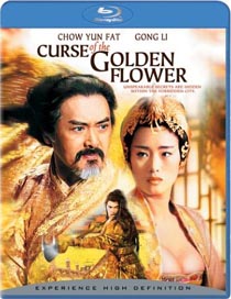 "Curse of the Golden Flower" (Blu-ray) Synopsis China, Later Tang Dynasty, 10th Century. On the eve of the Chong Yang Festival, golden flowers fill the Imperial Palace. The Emperor returns unexpectedly with his second son, Prince Jai. His pretext is to celebrate the holiday with his family, but given the chilled relations between the Emperor and the ailing Empress, this seems disingenuous. For many years, the Empress and Crown Prince Wan, her stepson, have had an illicit liaison. Feeling trapped, Prince Wan dreams of escaping the palace with his secret love Chan, the Imperial Doctor's daughter. Meanwhile, Prince Jai, the faithful son, grows worried over the Empress's health and her obsession with golden chrysanthemums. Commentary This film is director by the same person that did Hero and House of Flying Daggers. The film style is very similar with its breathtaking visuals and grand production design. The film is not nearly as action packed as the other two, but the action sequences are quite impressive. Overall, I thought the story was good, but a bit long winded. The previous films I mentioned had more going on to keep your interest, whereas this film is a bit slow in storyline but captivating in detail and visuals. Technical Sony delivers a pretty decent image here. Detail is impeccable through most of the film, and the gorgeous colors of the interiors of the palace are quite the treat to look at. Depth of image is also quite impressive. I did see some rather severe banding in the beginning of the film when the backdrop is obviously CG and not very well incorporated into the film. There is also a lot of noise toward the end of the film during some of the longer shots of the palace exterior when it seems like the encode has issues with the resolution. Overall, this is a very good transfer, but it comes up short of what I would consider to be reference quality. The uncompressed PCM soundtrack is very aggressive, and you can tell that sound design was very important to the production. The surround soundstage is heavily utilized, with some very cool discrete channel usage throughout. The low end is very prominent with excellent extension into the infrasonic range. The soundtrack is presented in the original Mandarin dialect, and subtitles are provided in the letterboxing. The dialogue sounds very clean and distinct, and its balance within the soundstage was very good. Extras Extras include a production feature and a look at the stateside premiere of the film. Trailers are also included. - Kris Deering -