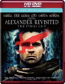 "Alexander Revisited - The Final Cut" (Blu-ray/HD DVD) Synopsis Torn by the war between his parents, Alexander left Greece to face massive armies in Persia, Afghanistan and India - and was never defeated. This film is now available is an all new and completely unrated version of Oliver Stone's epic story, loaded with nearly 40 minutes of additional never-before-seen footage. Restructured and expanded into two acts with one intermission, Stone's vision is delivered the way he originally conceived and intended it to be. Commentary Needless to say, this is a LONG movie. I never saw the theatrical cut, but I did see the director's cut of this film on DVD before I saw this version. I must say this is better, though it is a lot longer. The story itself is epic, but can be slow at times. The battle sequences are massive and Stone shot them in a way to at least be manageable. Characters are fleshed out a bit more in this cut, and I thought they took some of the focus away from Alexander's sexuality a bit compared to the cut I saw before. The final battle near the end of the film is much more brutal, with some of the most graphic violence I've seen in a film in quite sometime. While I would call this the best version I've seen, it isn't a movie I would watch very often, if at all again. Technical This is one of the best transfers I've seen from the high def formats so far. Detail is exceptional, and the image has a crisp quality that is quite impressive. During the opening battle, there is a lot of dust in the air and lots of fine details in the armies, but I never once saw the image break up from the massive amount of detail, and banding was never an issue. Contrast is excellent and even blacks are noise-free, regardless of the light levels. Colors are vivid, and stylizing is evident, especially in some of the gore. Overall, a dazzling job by Warner. Warner stuck with a standard DD+ and Dolby Digital track for this one, encoded at 640 kbps for both releases. Personally, I think they need to start including higher resolution soundtracks on their releases across the board, especially with their Blu-ray releases, as they are not coming close to tapping out the available bit rate. Don't get me wrong, the audio presentation here is excellent, with no obvious limitations in spatial quality or dynamic range, but it would be nice to see them take full advantage of what these formats can deliver, especially at these prices. Extras Extras include an introduction by Oliver Stone, two feature commentaries, a full length documentary on making the film, and some production features. The theatrical trailers are also included. - Kris Deering -
