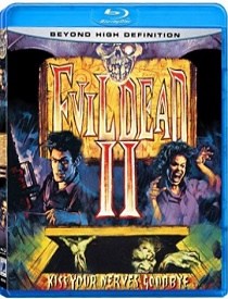 "Evil Dead II" (Blu-ray) Synopsis Ash, the sole survivor of The Evil Dead, continues his struggle with the forces of the dead, with his girlfriend Linda. The two discover a mysterious tape recorder and hear the voice of Professor Knoby reciting passages from the Necronomicon, or Book of the Dead. Little do they know that the professor's words are powerful enough to invoke a spell that unleashes the spirit of evil alive in the remote forest surrounding them. Watch in terror as the plot sickens and the supernatural demons invade the cabin on a gory crusade for human victims. In desperation, Ash attempts to escape his horrific fate by battling with the gruesome ghouls with the help of some unexpected visitors. However, he discovers that he is no match for the unspeakable creatures lurking behind every door, and waiting beyond every corner. Commentary I remember when this film hit theaters. I was in elementary school, and the poster was REALLY creepy looking. Unfortunately the movie is anything but. I know this film series has a cult following, but I never got into the campy side of it. Any real attempt at being scary or creepy is completely killed by the over the top silliness of it. Even as a horror fan, I don't think I can recommend this one very highly. Technical This transfer is a bit of a mixed bag. Considering the production value and budget this film was shot on, the image looks pretty good. It is almost completely devoid of noise, dirt, and cuts, meaning the master is in good shape, and I thought the depth of image was quite good at times. The problem is fine detail. There was a THX version on DVD that I got for review quite a few years ago that had more detail, and this release doesn't look like it used that same master. This master looks to be the same as the "Book of the Dead" addition that came out on DVD quite awhile ago (man there were a lot of DVD editions of this film!) Maybe we'll see this one a few more times in HD as well, and hopefully we'll see a version using the more detailed master. The uncompressed PCM 5.1 soundtrack is a nice addition, but again this is a film shot on a limited budget, so don't expect too much. The soundtrack is a bit on the bright side at times, and dynamic range is a bit limited. Surrounds are used quite a bit though to add to the mood of the film, regardless of how campy it might be. Dialogue always sounded off to me, regardless of which version I watch, and this is no exception. While it does sound a bit more refined than the DVD versions, it isn't anything to boast about. Extras Extras include a feature commentary with the director, star and some production staff, a film fact feature, some production features, and the trailer. - Kris Deering -