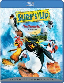 "Surf's Up" (Blu-ray) Synopsis Surf's Up is an animated feature that goes behind the scenes of the high-octane world of competitive penguin surfing. The film profiles Cody Maverick, an up-and-coming surfer as he enters his first pro competition. Inspired by his hero, a legendary wave rider named Big Z, Cody leaves his family and his town of Shiverpool, Antarctica, to travel to Pen Gu Island for the Big Z Memorial Surf Off. Cody believes that winning will bring him the admiration and respect he desires. But when he unexpectedly comes face to face with a washed up old surfer named The Geek, Cody begins to understand that the greatest champion isn't always the one who comes in first. Commentary When the trailers for this came out, I wasn't very enthusiastic about seeing it. My daughter asked to go though, so I made the trip. I am really glad I did. I really liked this one. The comedy is great, the characters are great, and I thought the approach and execution were really original. Instead of just another penguin movie, you get a funny inside look at penguin surfing in this mock-documentary. The animation is incredible, and the film has lots of heart. Perfect family fun! Technical Having seen this in the local cinema I had a little bit of a heads up on what to expect visually. I think people will be on the fence with this one because of the style choices the filmmakers went with. Personally, I loved it. They went for a documentary look and mimicked lots of different filming styles, complete with their flaws. But they pull it of perfectly. So what you get isn't the normal super crisp and punch digital animation. Instead you get some soft focus, scan lines, film wear and tear, the whole bit. There are moments when the full power of the animation comes through, but it isn't that often. I think this transfer captures the intent of this film perfectly, but some may be disappointed depending on their expectations coming in. Sony has included two different high resolution audio options. There is a 16-bit PCM soundtrack and a full 24-bit Dolby TrueHD soundtrack. Honestly, there wasn't much of a detectable difference if any at all, but I'm glad to see Sony supporting full resolution lossless soundtracks. This film's sound design isn't as aggressive as some of the other animated films out there, but it's fun. The soundtrack is more rock/pop based, and that livens things up a bit. Some of the big wave riding toward the end of the film has some great dynamics and low bass, and the rear soundstage is pretty active most of the film. Extras Some great extras here. The highlight is the HD presentation of the Academy Award winning animated short film The ChubbChubbs. This was included way back in the day on the Men In Black DVD. On top of that you get the new sequel, The ChubbChubbs Save Xmas, which is funny but not quite as good as the original. Also included are some commentaries, production features such as a look at making the animation, a pinball game, a music video, and some themed fun features for the kids. - Kris Deering -