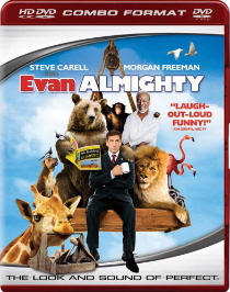 "Evan Almighty" (HD DVD Hybrid) Synopsis Steve Carell is at his hilarious best as junior congressman Evan Baxter, whose wish to "change the world" is heard by none other than God. When God appears with the perplexing request to build an ark, Evan is sure he is losing it. But soon mysterious deliveries of wood and tools are being dropped on his doorstep, animals of every shape and size are flocking to him two by two, and his self-absorbed life goes from overnight success to almighty mess! Commentary The sequel to the hit Bruce Almighty, this new movie takes a different route. The first film was quite funny, but a lot of the humor was geared more at an adult audience. Sure it was teen friendly, but some of the sexual overtones were geared a bit higher up the age curve. This new movie is definitely a family film and should be viewed as such. I didn't find it that funny, though I did chuckle a few times, but I did find it to have its heart in the right place by the end of it. Technical Universal does a good job with the HD presentation here, but I found it a tad dark. Don't know why, it just seemed dark to me. Contrast looked good though, and shadow detail was decent. Colors are very good with no apparent bleeding or noise. Fine detail is excellent, though I found some of the longer shots to be a bit on the softer side. The special effects blended in well with the live action, but there was no doubt about what you were looking at. Overall a nice effort from Universal, but not their best. Despite their recent trend of including a lossless TrueHD soundtrack, this one only gets a DD+ 5.1 mix. I wouldn't say I was overly disappointed, but I would like to see more consistency in providing lossless or uncompressed soundtracks from studios. My biggest complaint on this release was the dialogue. There was obvious strain through most of the film, which was surprising for a film of this budget. This resulted in a rather harsh tone from voices. The rest of the mix was good though. Spatial cues provided a nice balanced soundstage that extended nicely into the surrounds, and dynamic range was dead on when it needed to be. Extras Universal has included some of its U-Control features for this release. You can select from three different U-Control options or have them all going at once to select from on the fly. These include a PiP commentary from various members of the cast and crew, pop up facts, and a look at the ark building book from the film with historical facts. There are also deleted scenes, an animal feature, a game, interviews, and production features. This HD DVD is also web-enabled and allows users to buy environmentally safe items in theme with the film. There are also some trailers to download. - Kris Deering -