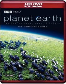 "Planet Earth: The Complete Series" (Blu-ray/HD DVD) Synopsis With an unprecedented production budget of $25 million, and from the makers of Blue Planet: Seas of Life, comes the epic story of life on Earth. Five years in production, over 2,000 days in the field, using 40 cameramen filming across 200 locations, shot entirely in high definition, this is the ultimate portrait of our planet. It's a stunning television experience that captures rare action, impossible locations and intimate moments with our planet's best-loved, wildest and most elusive creatures. From the highest mountains to the deepest rivers, this blockbuster series takes you on an unforgettable journey through the daily struggle for survival in Earth's most extreme habitats. Planet Earth takes you to places you have never seen before, to experience sights and sounds you may never experience anywhere else. Commentary I don't watch television at home, but I swear every friend I have kept telling me about how great this show was when it aired on The Discovery Channel. I was glad to have the chance to review it on both formats, and I must say, I understand what all the hype is about. This is a GREAT series. If nature documentaries were this cool when I was growing up, I would have been glued in from go. The show covers a wide range of topics from animal species, forests, continents, ocean life, and more. The production value is incredible throughout, with each sequence adding to the next. If you are even remotely interested in nature documentaries, you'd be doing yourself a disservice by not checking this one out. Technical I think everyone who is truly into HD just loves watching nature stuff. There is a lot of it out there, and everyone I know with an HDTV, even from back in the old days, goes on and on about Discovery HD and the cool nature footage. I understand why, but I still find it amusing. There is no doubt that there is some captivating footage here, and its only enhanced by the fact that its in HD. The image is video based, so make sure you have your equipment set up appropriately (i.e., not in 1080p24). Most of the time I was so distracted by what was going on, that I had a hard time focusing on the quality of the presentation. This isn't perfect by any means, but it's very good. Detail is consistently solid, but it does have a bit of a filtered video look at times. Banding is noticed more often than I would like, but I imagine that could have been the result of the cameras used. Some of the darker scenes have some noise and blocking, but it's hardly distracting. I did notice some compression noise in some of the busier sequences (like lots of birds), but again this wasn't very disruptive to the viewing experience. I got to watch a few episodes on TV finally in HD, and I would definitely say this presentation is a big step up from the cable broadcast. This maybe one of the only HD releases to date that I've seen that is stuck with a 448 kbps Dolby Digital soundtrack. I don't understand why, but that is what we get. The narrative is solid enough, and the voice work never sounds compromised or thin. The score is engaging, but compared to some of the other nature stuff out on HD, it doesn't fare as well (Nature's Journey is an excellent example). The sounds of the animals and nature are quite good though, and what I would expect from a documentary of this nature. Extras Sorry, no extras on either release. - Kris Deering -