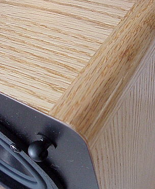 One external item that does directly affect the sound can be seen when the grille is removed. Dunlavy has patented this feature, namely, the placement of wool felt pads around the tweeter (a cloth dome variety). As you probably know, when sound (the waveform) comes out of one driver on the front of the enclosure, it will interact with the sound (another waveform) coming from other drivers nearby on the front of the enclosure, causing diffraction. By placing the felt pads around the tweeter, diffraction (interaction between the tweeter waveform emerging, and the mid/bass waveforms emerging) is reduced. The tweeter in between two mids is called the D'Appolito configuration, after a speaker designer with the same name. It makes the sound of the highs and lows blend together, in placement, rather than the highs coming from the top of the speaker and the mids from the bottom. The tweeter on the SC-1/AV is deeper into the enclosure compared to the mid-range drivers. This aligns the phase of the emerging waveforms.