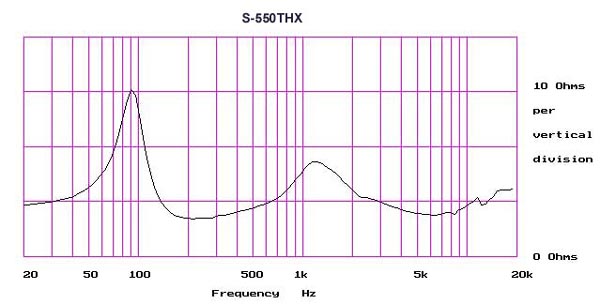 A look at the S-550THX surround speaker shows a relatively benign load, dropping to 6.8 ohm minimum in the same manner. I asked Charles Back at M&K about this, and he mentioned that THX Select actually specifies surround speakers with an 8 Ohm nominal impedance to make life easier on receivers. This suggests that a user could not only hope to reasonably drive a system to usable levels with a good receiver, but also supplement a system with a three-channel amplifier, allowing any decent receiver to power the rear channels famously.