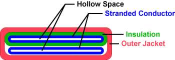 unique conductor geometry -- hollow-core, stranded oval cables (see diagram