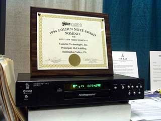 Camelot's Round Table DVD player offers progressive output, using the DVDO 101 video processor (it will update to 102 when chips available.) Will output 24/96 digital signal. MSRP $3.995 |