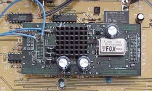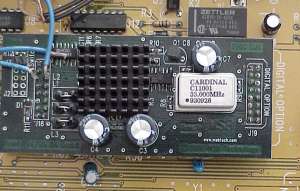 Close-ups of the Link DAC III PC board are shown below. In the left photo can be seen the DAC portion, covered by a heat sink, next to which is the factory installed 24/96 upsampling chip (labeled FOX). In the right photo, the 24/132 high speed upsampling chip is shown, after I installed it (labeled CARDINAL).