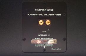 The rear panel is all business, and its only distinguishing feature is the binding post assembly pictured here. The fascia extends slightly beyond the enclosure, and a gasket affords a tight seal between the end of the cabinet and the end of the fascia. The speaker cannot be bi-wired, and BG has no plans to add the capability due to insufficient demand for this feature.
