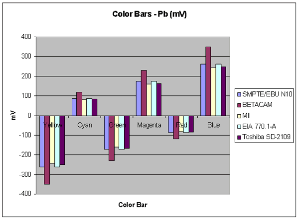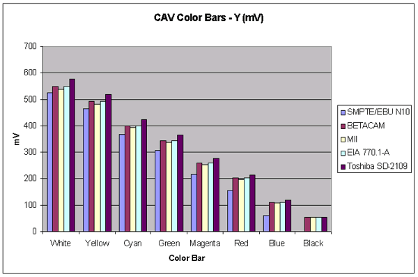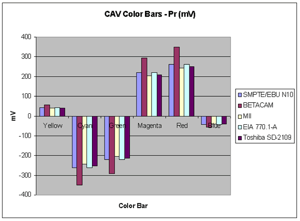 The Pb portion of the CAV output is just below SMPTE and EIA 770.1. The Pr portion of the CAV output is just below SMPTE and EIA 770.1.