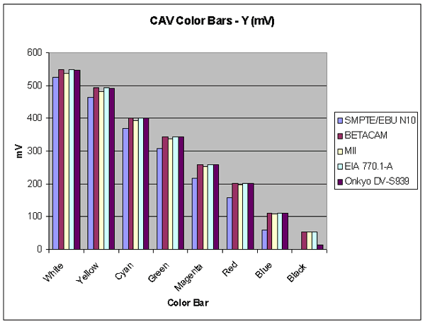 The Y out of the CAV channel closely matches the SMPTE and EIA levels.