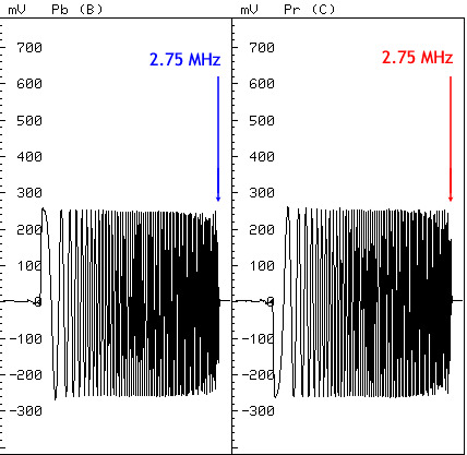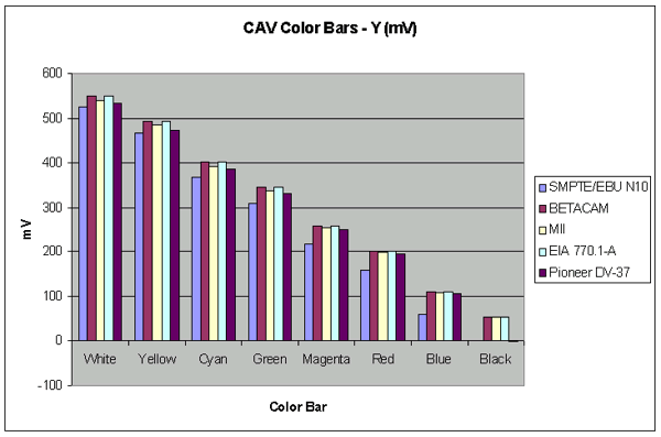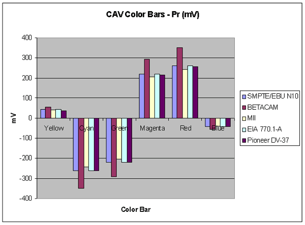 The Pb portion of the CAV output is just below SMPTE and EIA levels. The Pr portion of the CAV outputs are just below SMPTE and EIA levels.