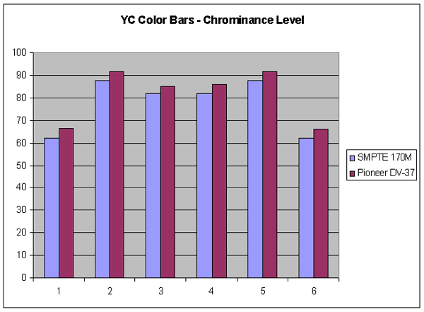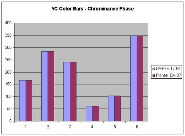 The chroma level is higher than SMPTE 170M. The Chroma phase of the YC output is perfect.