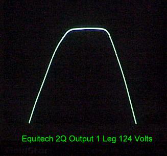 The harshness that I was used to with DVD movies was reduced considerably. A comparison of the wall AC waveform and the output waveform of the 2Q (shown below) suggests a reduction in some of the harmonics, but not a restoration of the original sine wave. A small spike (green arrow) and a bulge on the right side (red arrow) were attenuated. Part of this may be due to a natural rolloff of the inductor itself (transformers are inductors), much like they do in speaker crossovers. The 2Q never got very warm, and never seemed to run out of power. It did not make any mechanical humming noises either, just as advertised. The other balanced transformer I reviewed still hums in the evening from time to time, and it is very annoying. So, the 2Q is probably as big a unit as you would ever need in most home theaters. Equi=Tech offers 30 and 50 amp units too, but they require 230 Volt wall sockets. Their smaller units, such as the 1.5Q (1,500 watts) and T1000 (1,000 watts) are less expensive and may be quite sufficient if you don't use six subwoofers like we do in our reference home theater lab.