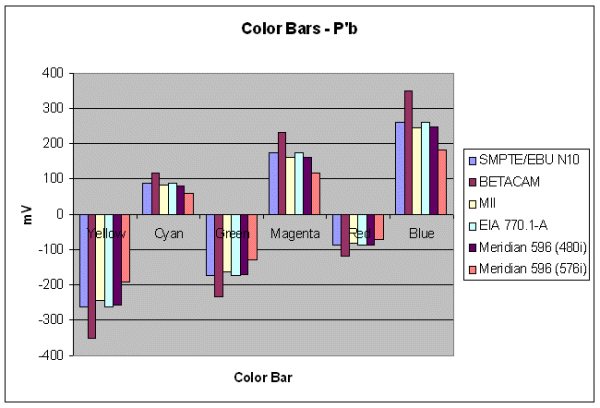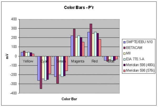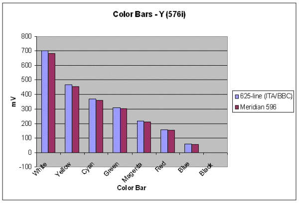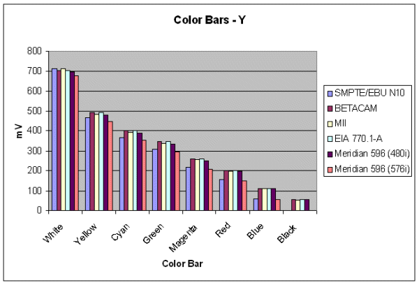 For CAV color bars, all measurements are in mV. For YC, 480i is measured in IRE, while 576i is measured in mV. We are not doing this to confuse you; this is the way they are measured.