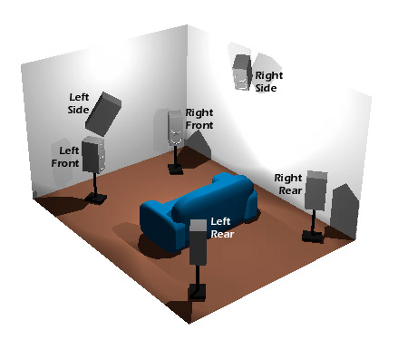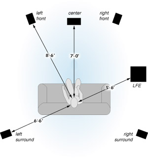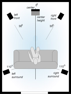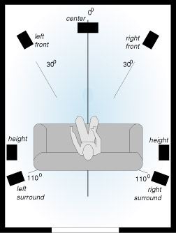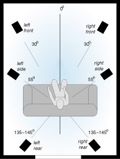 What ends up in the 0.1 channel is solely at the discretion of the mixing engineer, and this can be anything from kick drums to bass guitar to pipe organs. All speakers are equidistant from the primary listening position, with the main left and right speakers at the points of an equilateral triangle. The surrounds are placed at an angle of 1100 to the rear of the listening position.