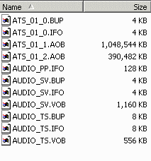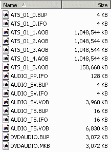 In Part 3, we took a quick look the directory structures for DVD-Video (movies) discs, and touched on what the contents of a DVD-Audio disc would look like. DVD-Audio files are contained in files with extensions AOB (Audio Objects). This distinguishes them from their DVD-Video counterparts which are contained in files with extensions VOB (Video Objects). For example . . .