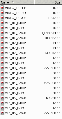 Shown below (Figure 5) is a directory listing of the VIDEO_TS folder; you can see there are six titles in this folder. See above for the descriptions of all but Title 6, which is another copy of the Dolby Digital 2.0 encoded track.