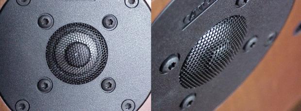 The tweeter is covered with a metal grille, and also, there is a small disc at the center, for dispersion (photos below).