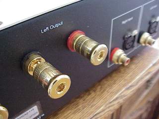 The rear panel has gold-plated RCA input jacks, XLR input jacks (the HCA-2 is a fully balanced amplifier), and very high quality gold-plated five-way speaker binding posts.